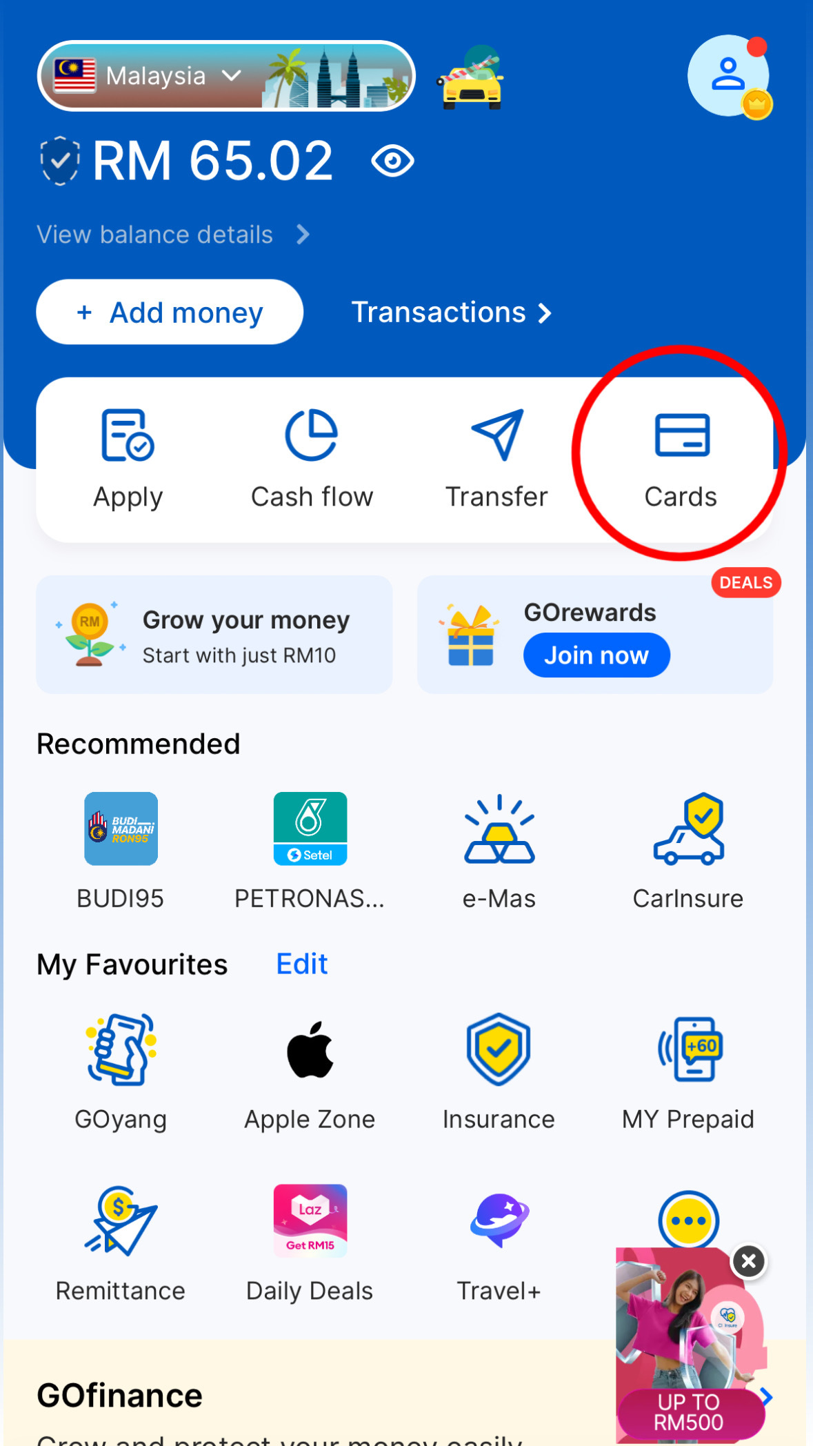 チャージの上限額は最大500リンギ、残高の上限額は最大1500リンギ。
