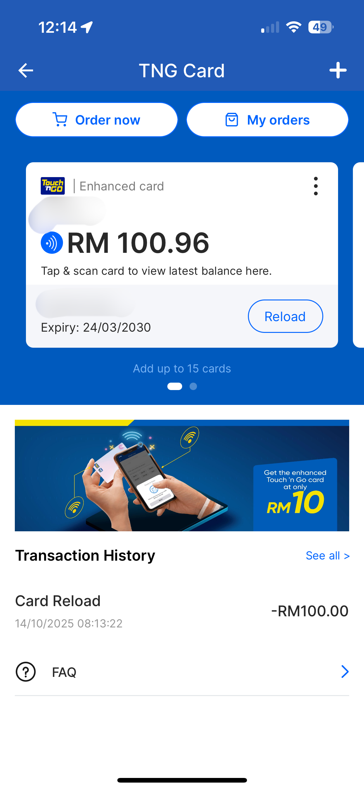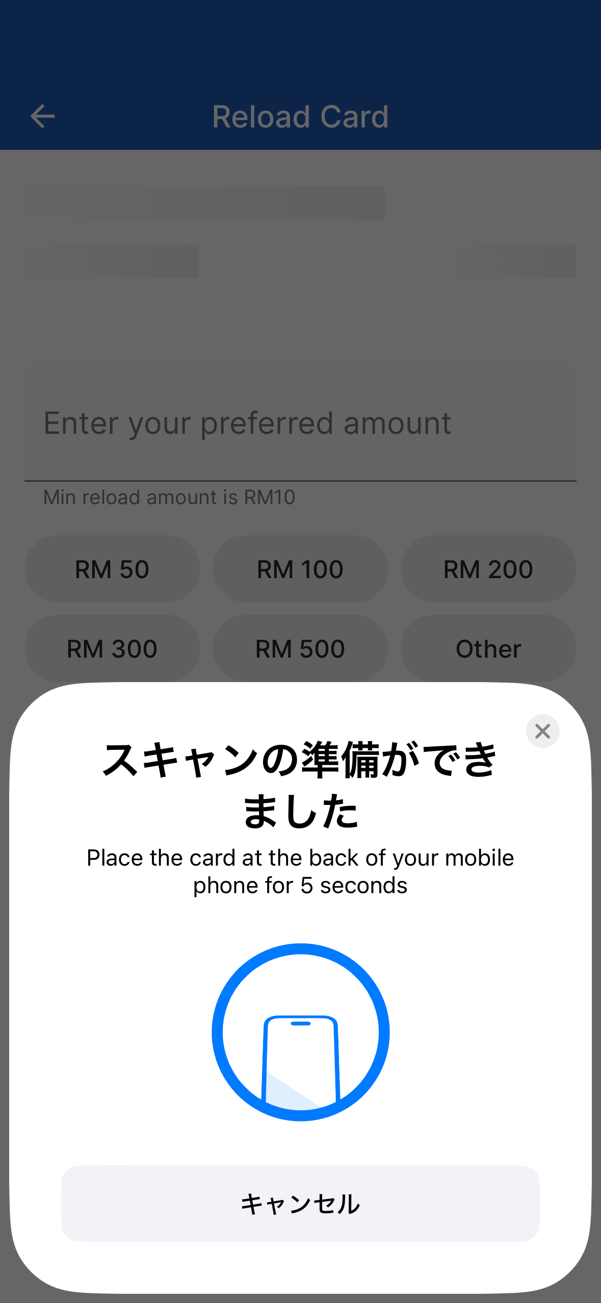 このカードはNFC機能(近距離無線通信)を搭載しており、スマホアプリ「Touch ’n Go eWallet」から直接チャージが可能です。